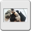 V leglu so štirje mladicki: en tribarven samcek in ena samicka, ter en blue merle samcek in ena samicka.